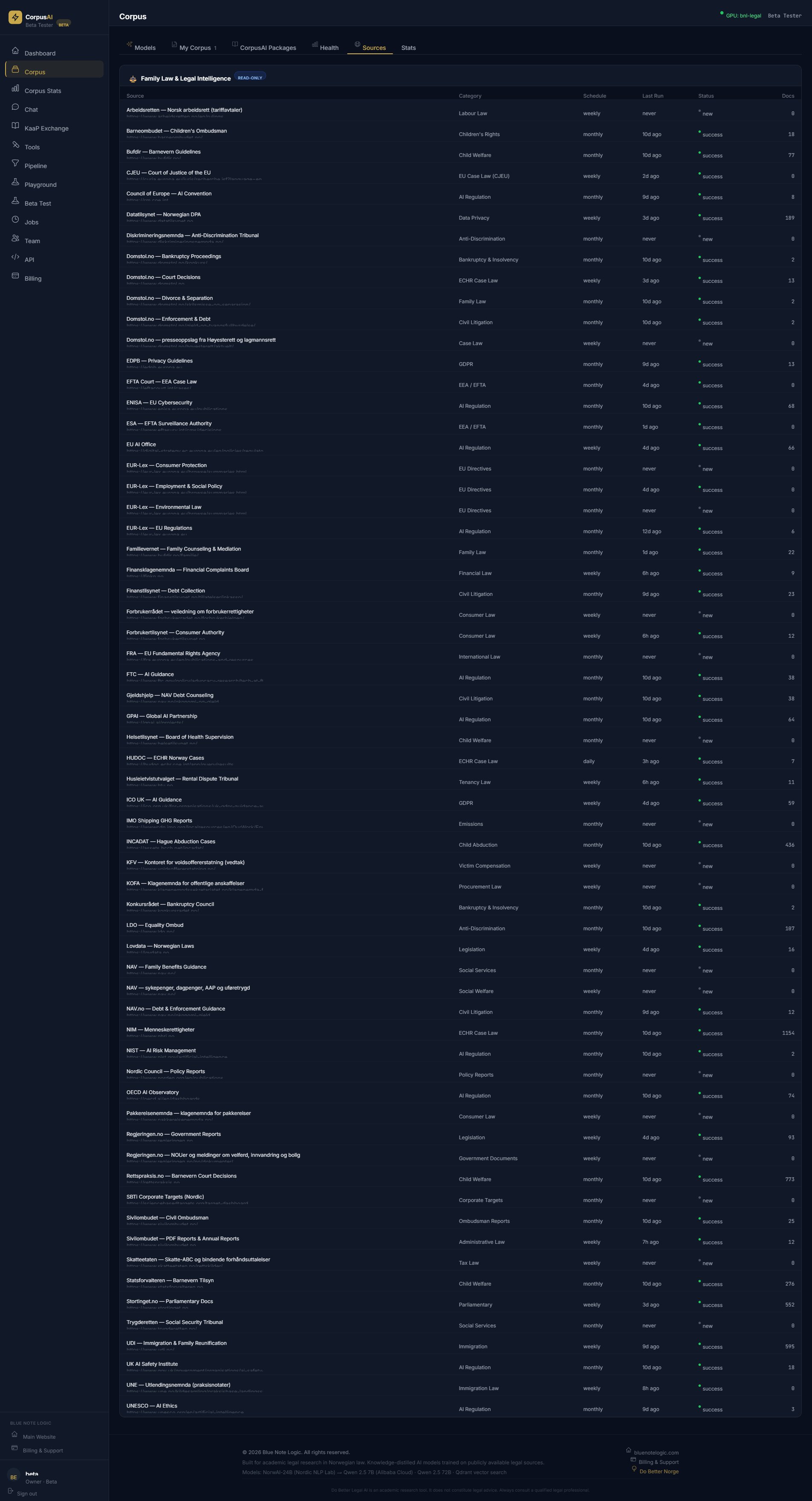 Professionally curated, continuously maintained document collections built by domain experts and Blue Note Logic. Legislation databases, court decision archives, regulatory frameworks, industry standards. Structured, categorised, and optimised for RAG retrieval.